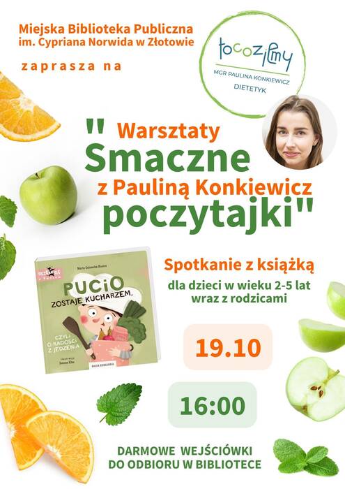 Już w najbliższy czwartek 19 października zapraszamy na warsztaty z Pauliną Konkiewicz Dietetyka pt. "Smaczne poczytajki".